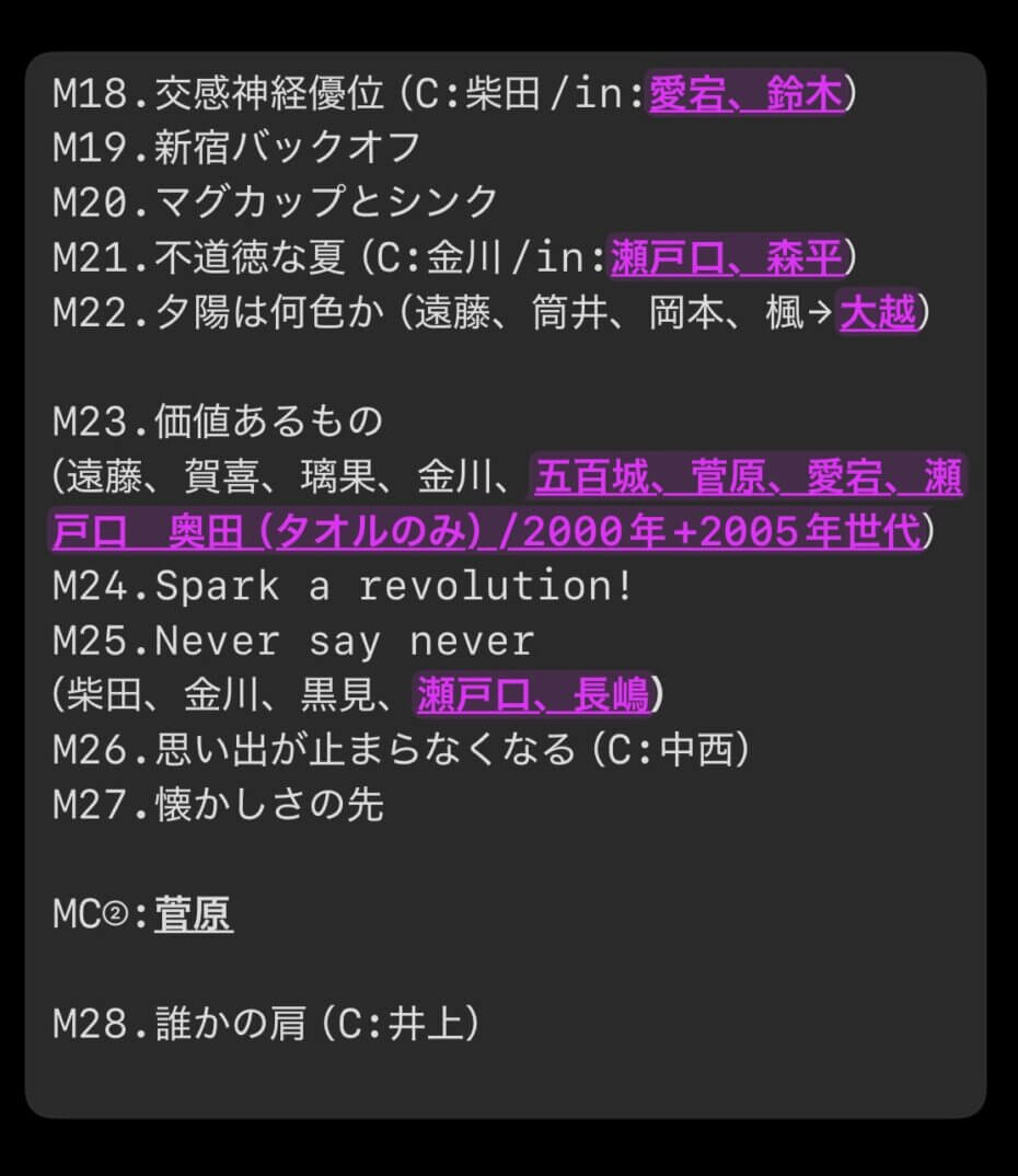絶対セトリほぼ同じ日があるわ