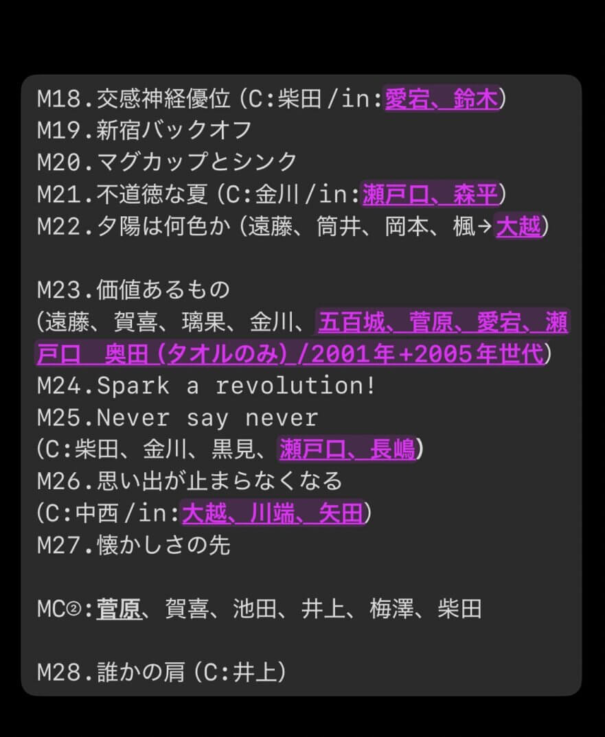 全く同じセトリとは思わんかったけど