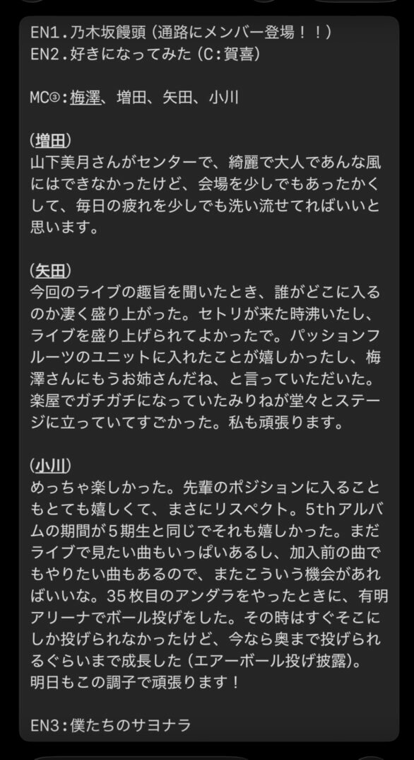 明日と明後日はセトリ違うから配信あるのだな