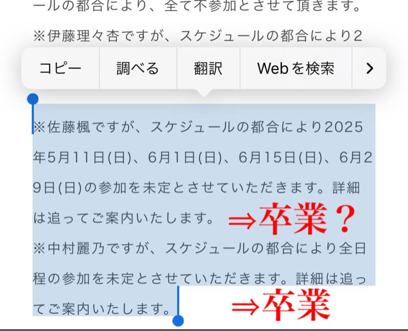 卒業だとしたらあまりにもバレバレ過ぎるし寧ろこれは安心パターンですね
