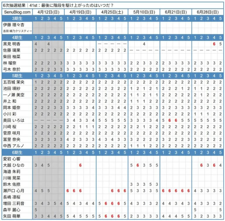 結局6期は42枚目選抜に4人ぐらいかな