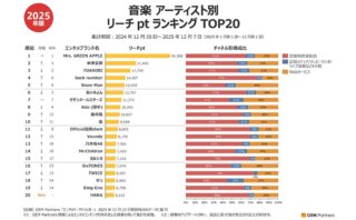 2025年メディア・サービス・チャネル横断で最も聴かれたアーティストが公開! 乃木坂46は女性アイドルで1位に!