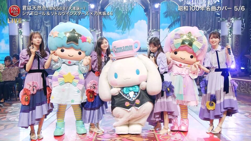 シナモロール達と「君は天然色」を披露するなぎさつとあやあや