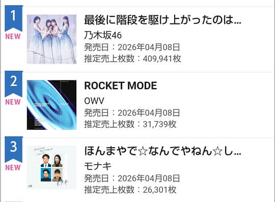 乃木41st 409,941枚/35名 +49,645枚/+4名(卒業6 加入11 休業1)