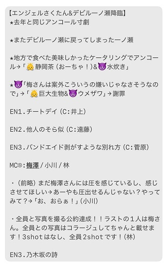 メンバー絡むパート少ないから林のみんなと写真撮った話は和んだ
