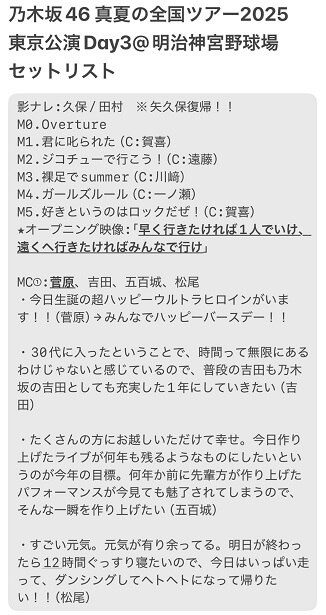 あと、トロッコの時に目の前にひーちゃんが2分ぐらい止まったまま居てレスもらい放題だったんだけどあれ一昨日も昨日もあったのかね?センターステージ横あたり