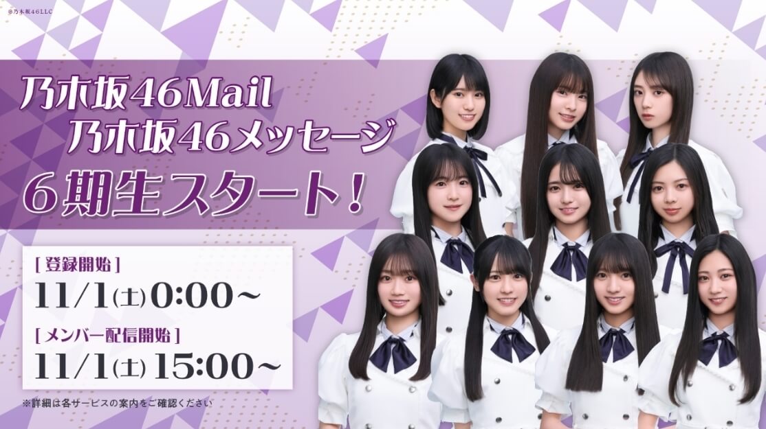 6期生の「乃木坂46Mail」「乃木坂46メッセージ」が11月1日(土)よりスタート!